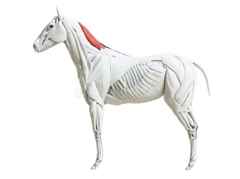 The rhomboideus muscle in horses is a muscle located in the upper back region, between the scapula (shoulder blade) and the spine. Here are some key facts about the rhomboideus muscle in horses: